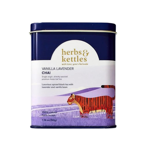 Vanilla and lavender aren’t the first flavors you expect in chai, but here they really work. The vanilla softens the edges of the Assam black tea base, and the lavender drifts in lightly, adding a floral note without lingering too long or edging out the other robust flavors. It’s a modern chai blend that brings two bold, unexpected flavors together, yet never forgets its roots in the warm spice profile of traditional masala chai.
